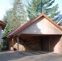 Das Carport ist zum Eingangsbereich hin geöffnet und so entsteht ein kleiner Platz vor dem Haus der zum spielen einläd. Der Carport beherbergt nicht nur die Autos der familie, sondern bietet genügend Platz für das Kaminholz.