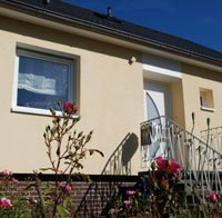 Faschen an Fenstern und der Haustür akzentuieren die Fassade zusätzlich.